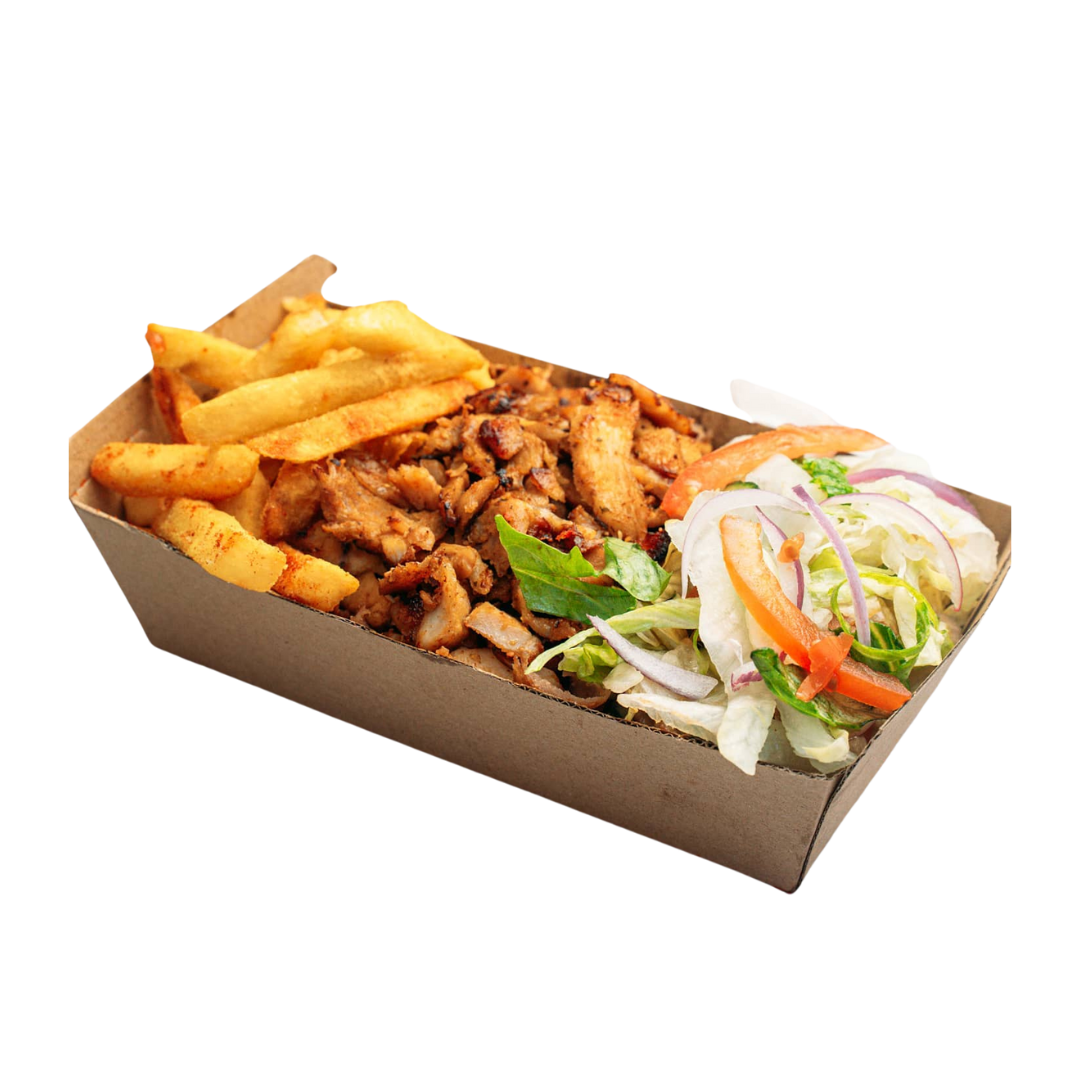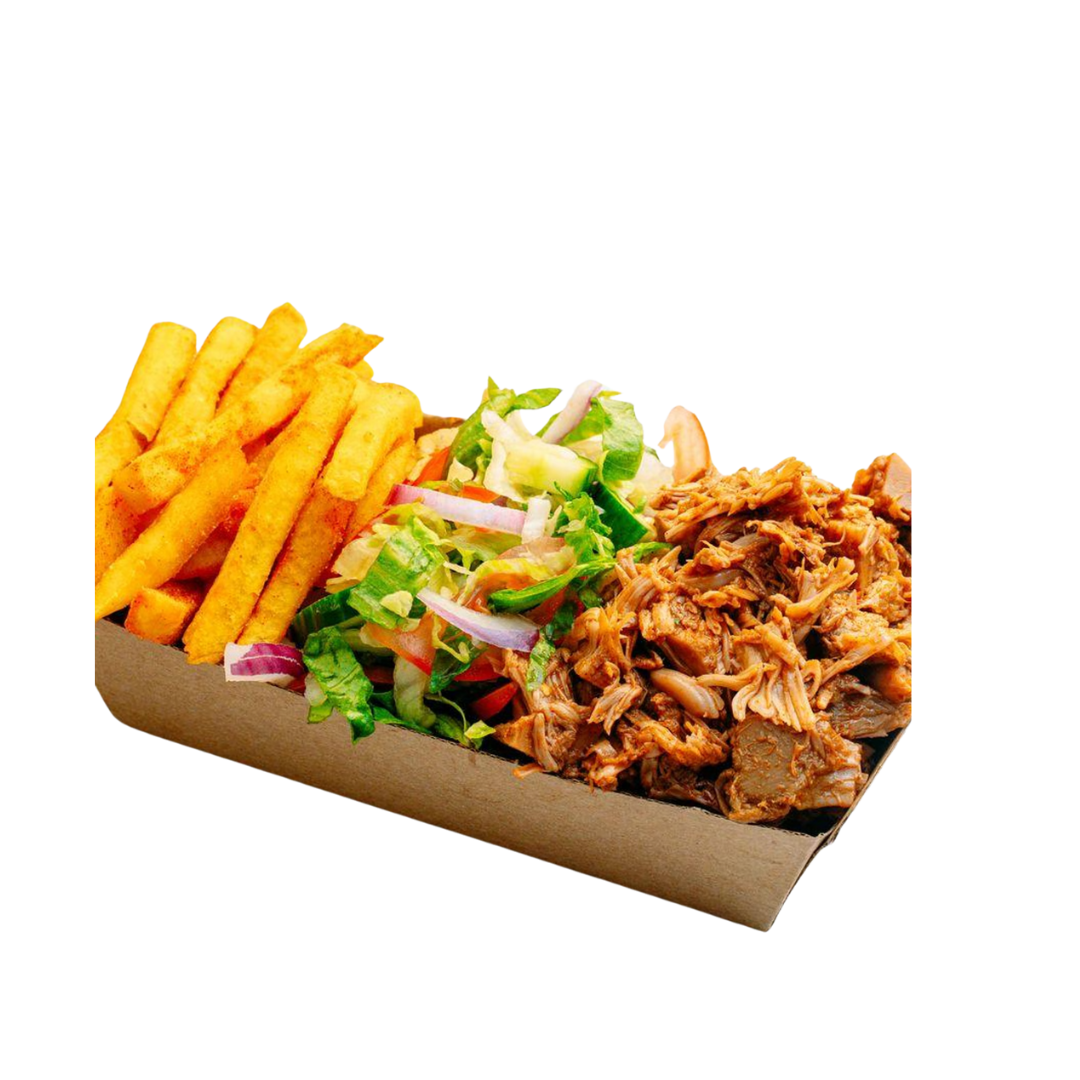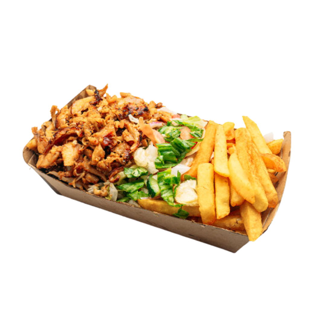 kebab meat, rich cheese, and drizzled with your choice of garlic, BBQ, or chili sauce