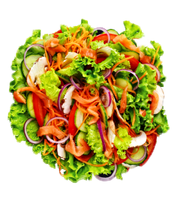 Grilled chicken served over fresh lettuce, tomato, cucumber, and onion.